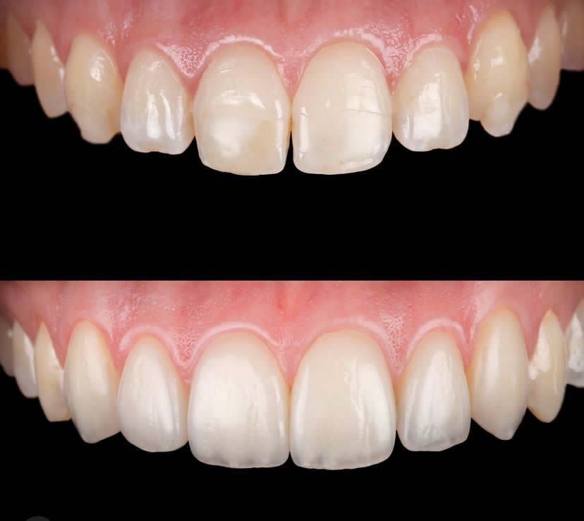 Dental veneers are thin, custom-made shells bonded to the front surface of teeth to improve their appearance by covering imperfections.